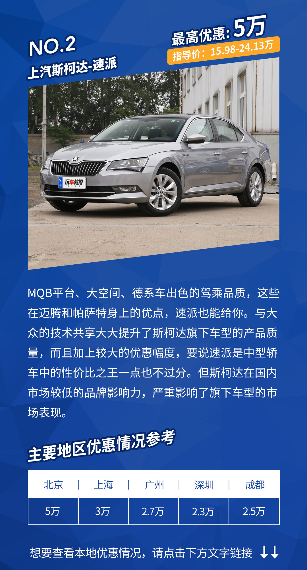 在中型轿车市场,同样有多款品质过硬的车型存在较大幅度的优惠。