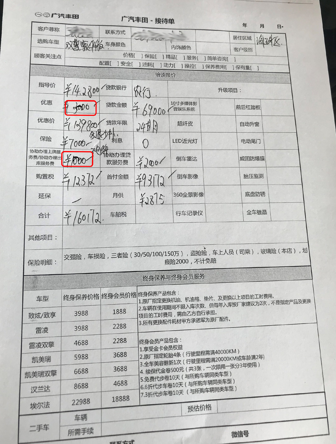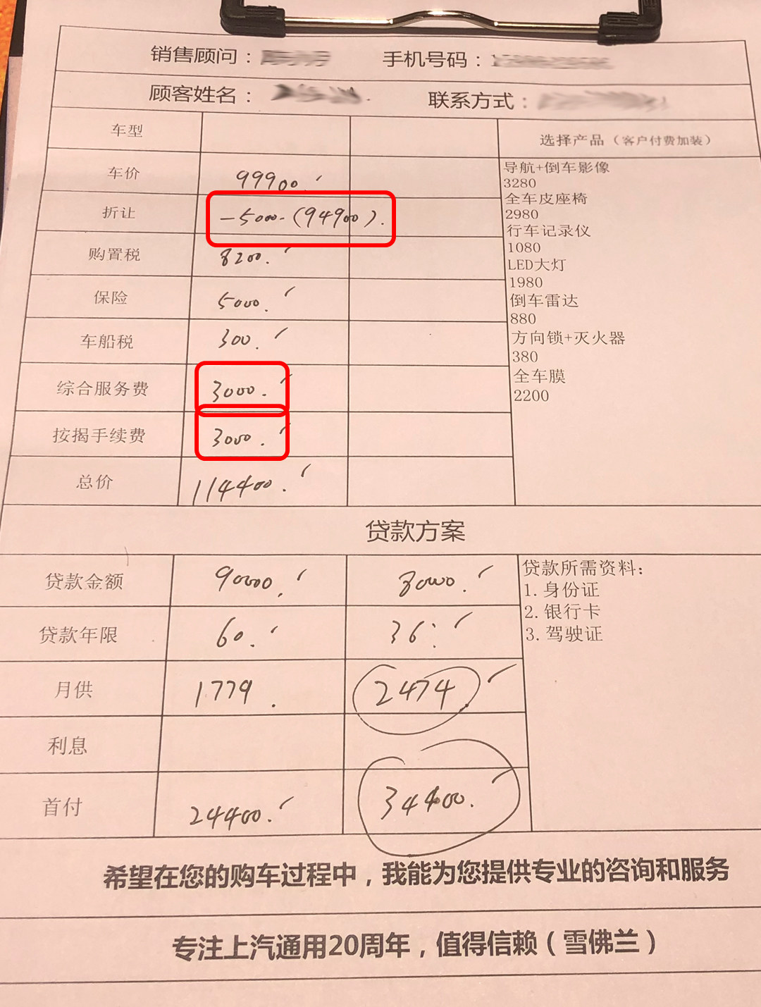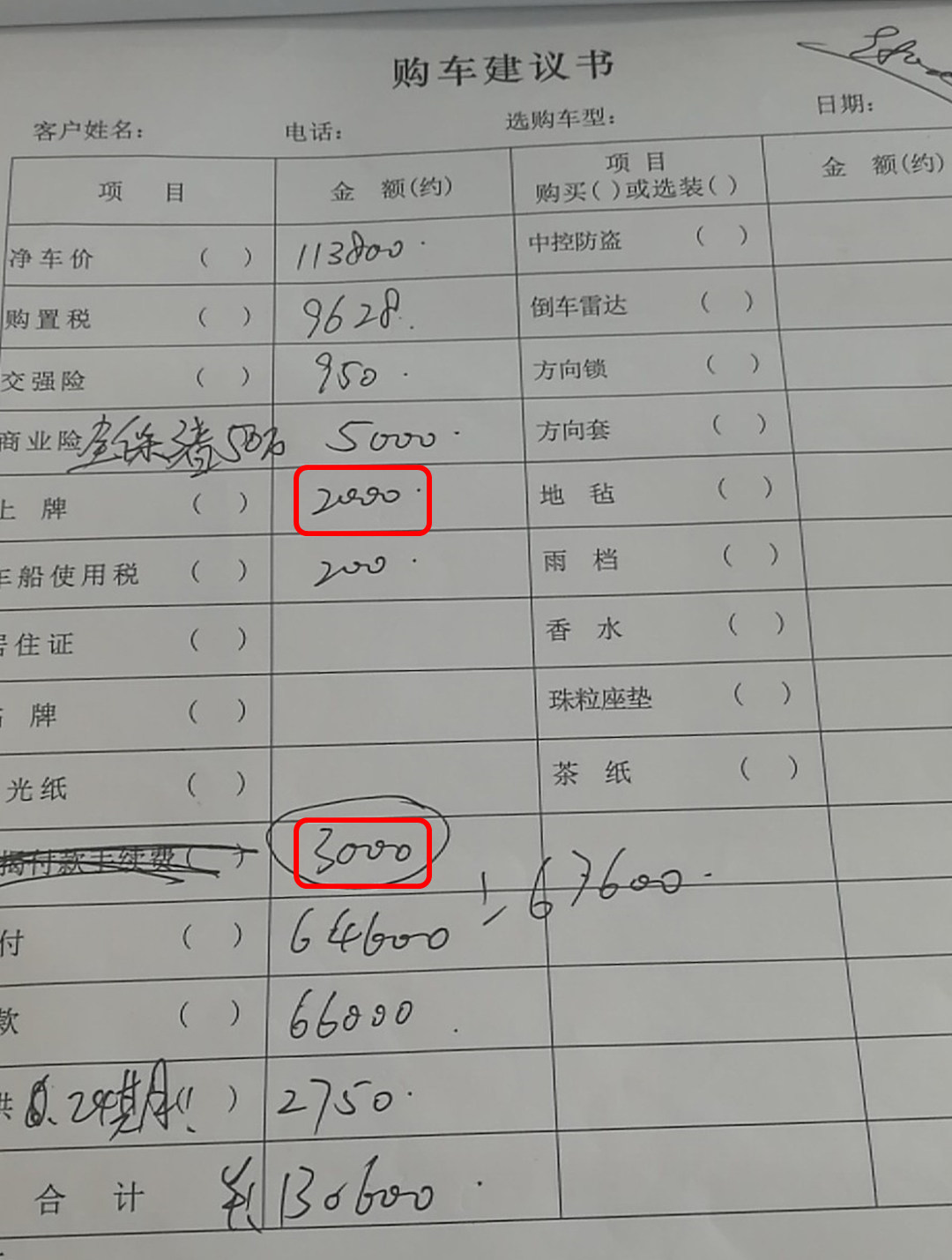这类资料通常会被不同的4S店冠以不同的称谓,像是诸如购车商谈单、报价单、建议书、接待单、预算表等等,是最终购车方案敲定前的“草稿”。