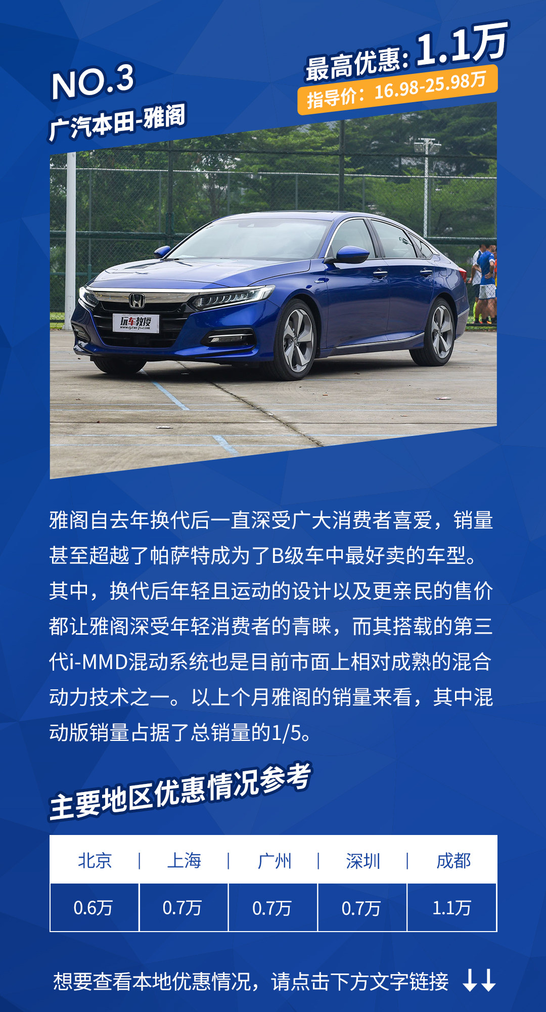相较于紧凑型轿车市场,国内的中型车市场几乎都被三厢轿车所占据,两厢以及旅行车款寥寥无几。而这些三厢车型中,这几款热销车型又有怎样的优惠呢?