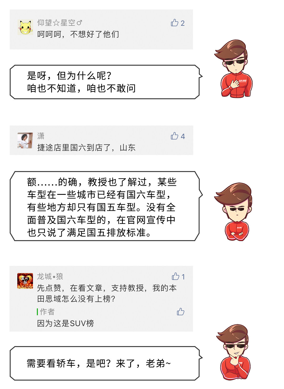 前些天,教授跟大家列了目前前30名热销SUV车型车辆环保标准情况,对于还没满足国六排放标准的车型,大家在评论区里讨论得十分激烈。