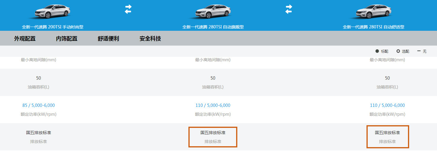 全新一代速腾今年3月刚上市不久,上市时并没有一步到位满足国六排放标准,而目前官方公布的消息还仅是满足国五排放标准。但同时小编也咨询过广州的部分一汽-大众4S店,速腾国六版本已经陆续可预订,7月1日前国五版全新速腾已经在不低优惠的情况下基本清完,现在还有的少部分国五版速腾仅在还没有实施国六标准的省市继续售卖。