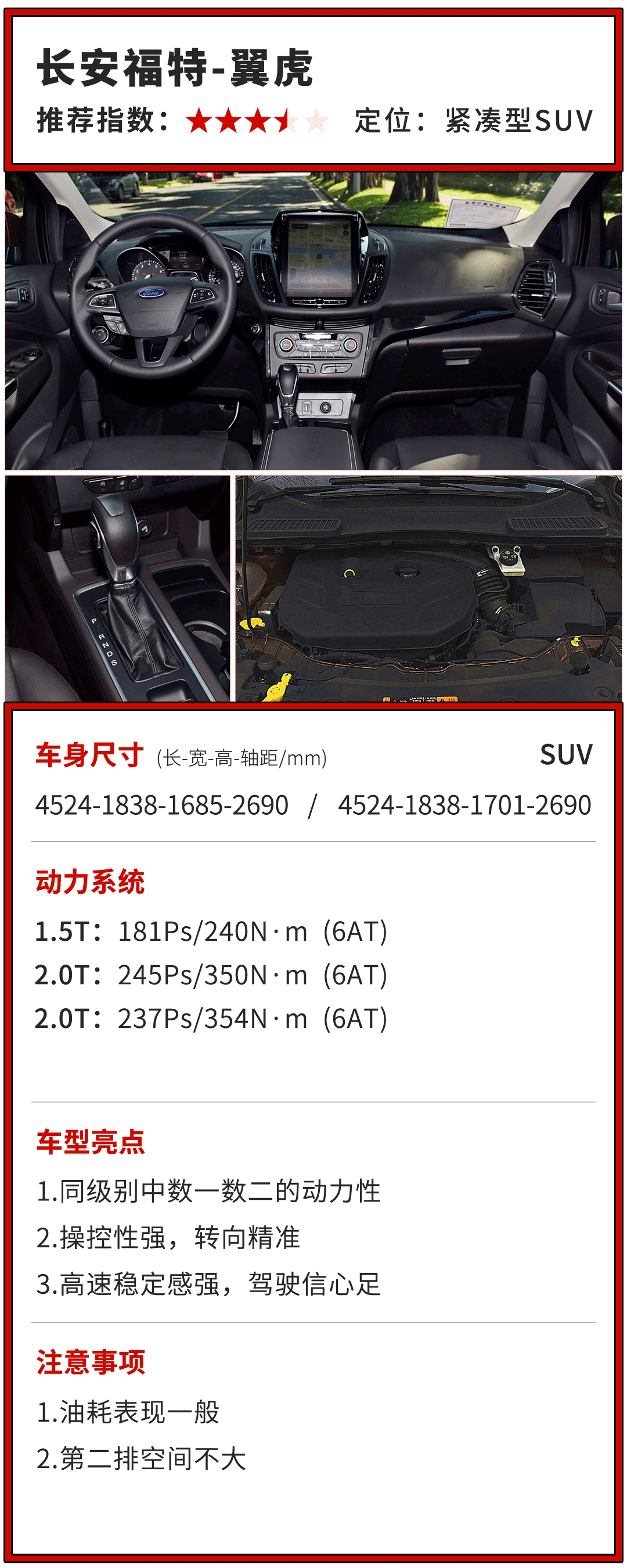 不过,既然翼虎的动态表现如此优秀,那就意味着它在其它方面做了相应的取舍,最明显的就是油耗和第二排的空间表现并不算好,所以这就让翼虎不太适合拿来家用,它更加适合那些热爱驾驶,平时只是一两个人乘车,后排偶尔坐人的年轻用户。