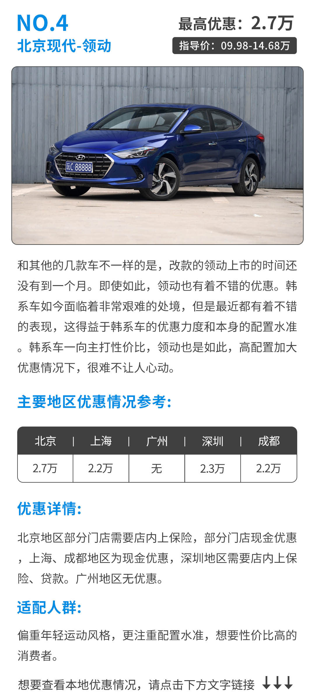 不过,需要注意的是,很多的车型优惠都是综合优惠,综合优惠是包括很多消费项目的,最终落地的价格是多少还得自己去当地的4S店询问清楚。如果自己不想要这些消费项目,就问清楚裸车价的现金优惠是多少。一般来讲,综合优惠力度这么大,现金优惠也不会差太多。