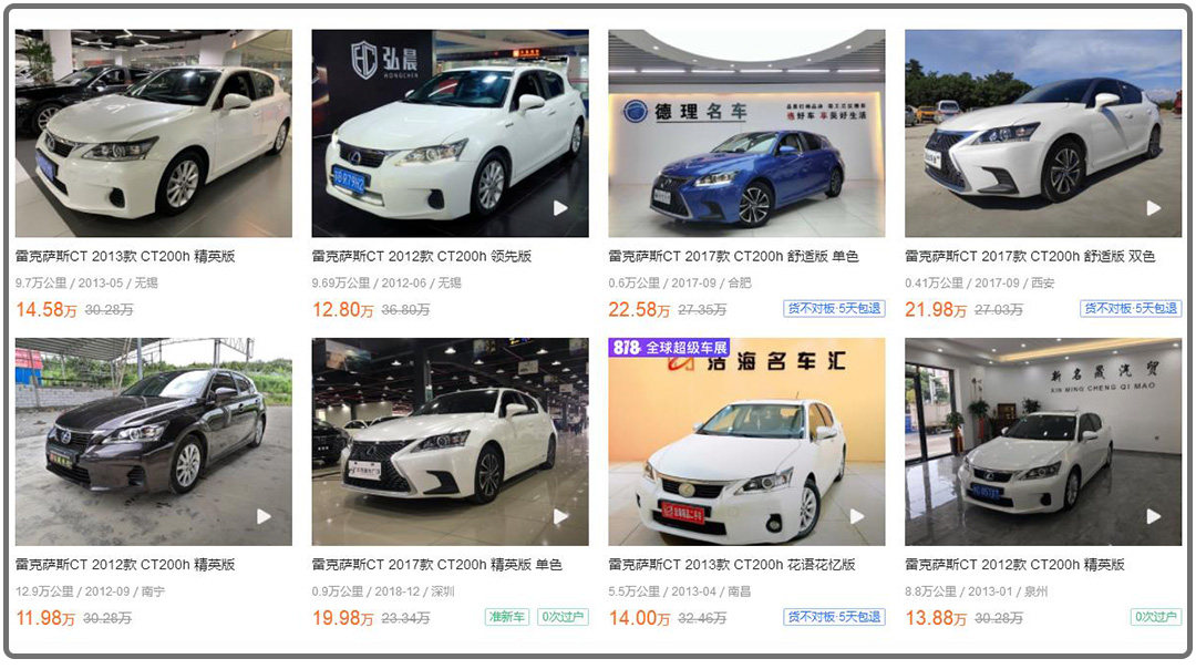 那么经济耐用的车型有哪些?从二手车的交易表现来看,日系车占了很大一部分,凯美瑞、卡罗拉等车保值率高,且交易时间短,根本就不愁卖。这些车毕竟是买菜车,如果想要奢华、个性一点,那么就绕不开雷克萨斯了。前面所说的十几万的两厢车就是雷克萨斯CT200h,二手车的年份主要集中在3-6年。