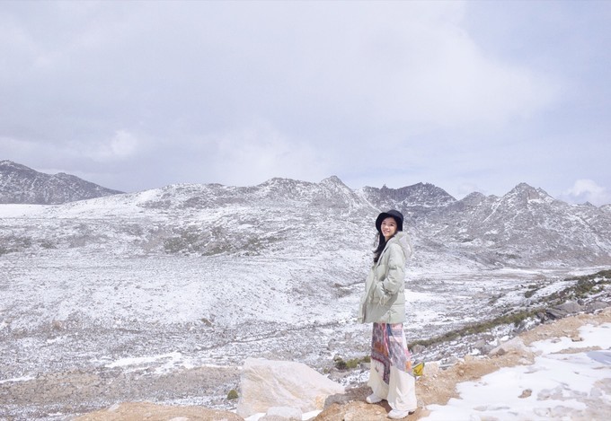 抵达景区时从山下平地慢慢随着人群前行,阳光很明媚气温很暖和,能看到轻雪微扬,艳阳下初春的模样伴着广袤无垠的美景,身体是无任何不舒适感的。