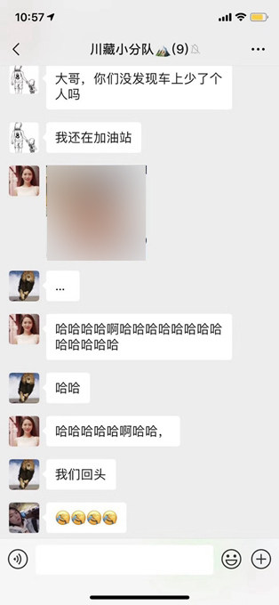 被“抛弃”的队友在微信小组里面淡定地问我们有没有发现少了一个人?看到信息时车上的人都笑到人仰马翻了,当我们发现他掉队的时候已经离开加油站20公里远了,领队笑到岔气的样子,踩着油门回去接他了。