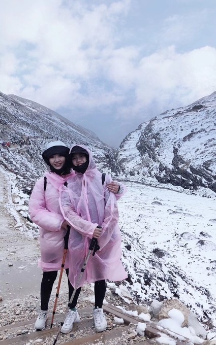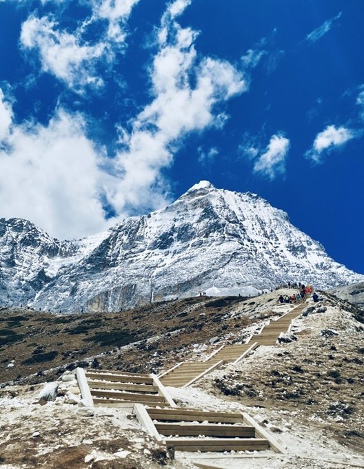 一个半小时过去了,体力极速消耗,冷冽的风开始呼啸,雨夹雪也开始攻击我们,我们一行人把身上衣物裹得严严实实的,看着眼前深不见底的阶梯,从一开始地欢声笑语也变得沉默不语了,在广州四季如春的天气生活了那么多年,对于这种陌生环境可能让身体出现的一切未知症状,其实我们都是无法预测和估量的。