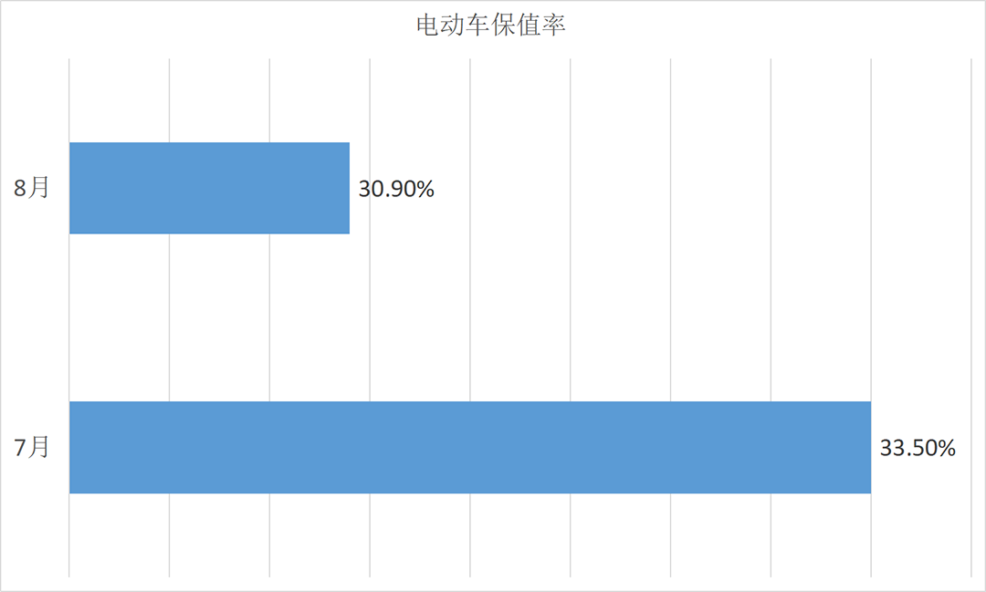 电动车除了担心续航里程外,还需要担心其残值问题,我们都知道电池每时每刻都在衰减,2、3年后续航里程可能还不及当初的一半。这种情况下,二手电动车的价值肯定要大打折扣,特别是舆论过分关注二手电动车之后,它的保值率就更低了,8月还下降了接近3%。