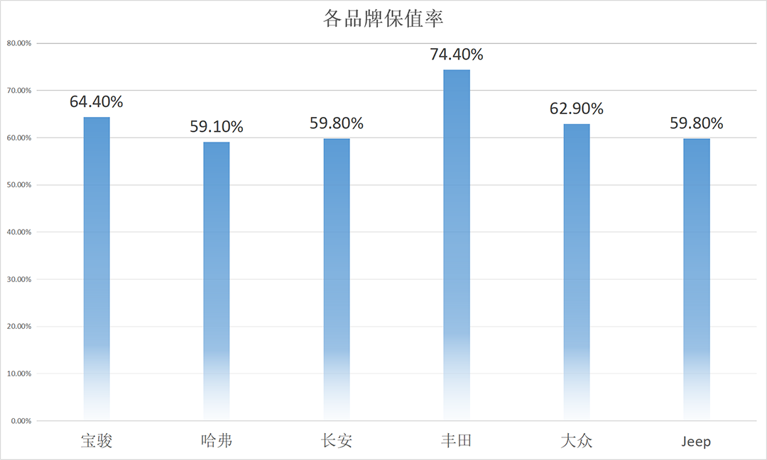 宝骏为什么有这么高的保值率,因为宝骏旗下大多为十万级以下价格的车,价格抗风险性很高,这也给我们一个提示,大多数国产二手车其实价格浮动并不大,因为价格都不高,如果再选择保值率高的品牌,比如哈弗,那么将来卖车的时候肯定不会亏。
