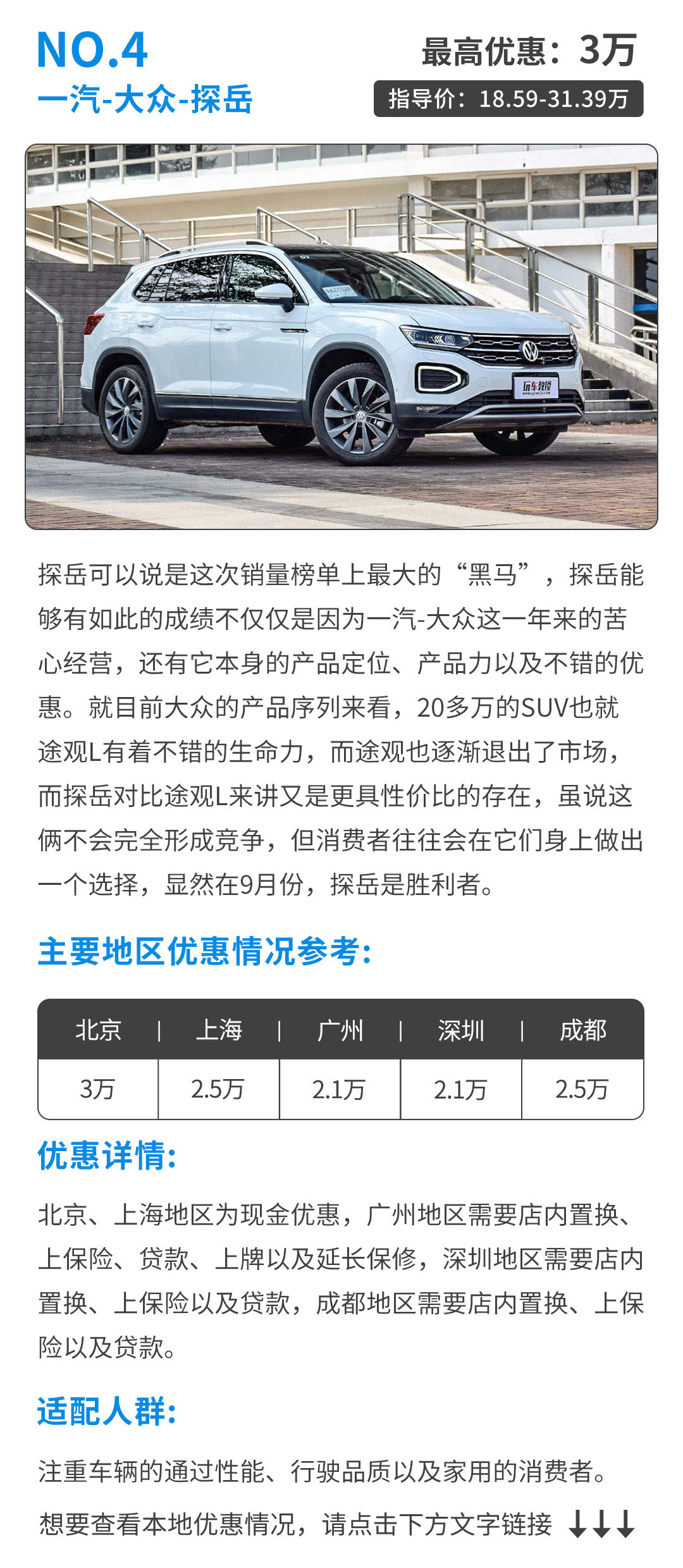虽然相比较去年略微有些下降,但是相比较前面几个月,却有了明显的增长。为什么会在车市遇冷的情况下,会有如此的增长呢?这就不得不提到金秋九月里厂商们的大促销了。其实,这些车型,销量大的背后都会有着不错的优惠,这一期,就拿销量榜上最典型的几款车,和大家聊一聊它们的优惠!