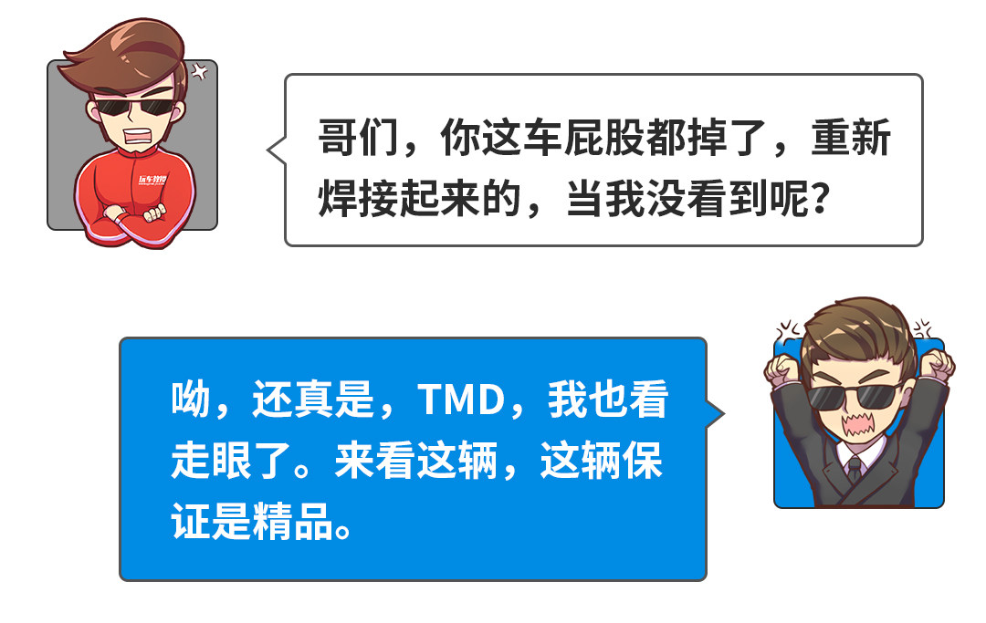 通过上面的文字,相信大家也知道二手车贩子有多坑了,“贩子的嘴,骗人的鬼”,总之,他说的话我们是不能100%信的。买二手车最重要是多看少问,你一开口,别人就知道你有多少料了。