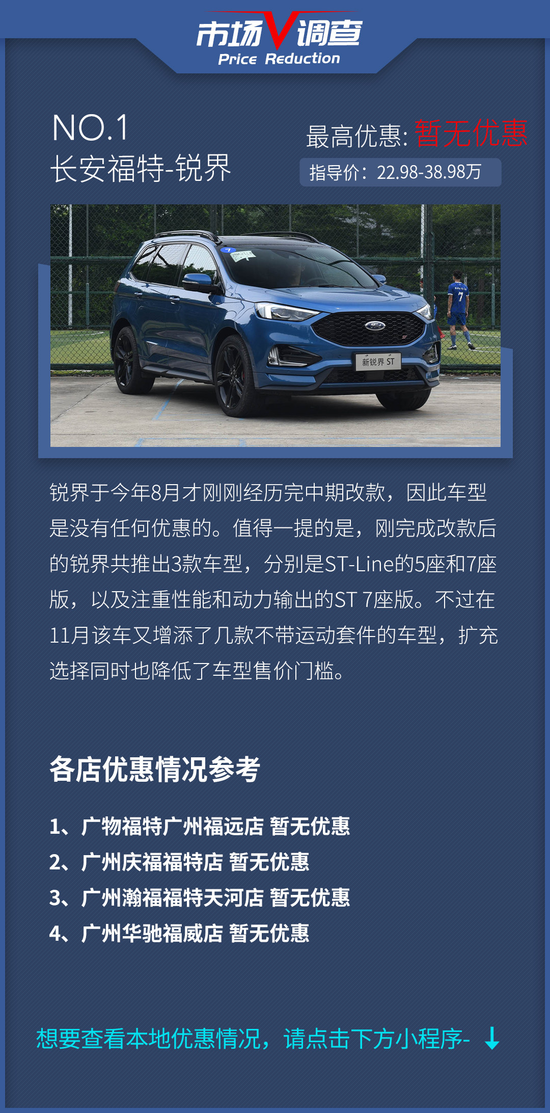 教授了解到,福特锐界5座版在店内有少量现车,如果是要订车的话则需要等1个月左右的时间,目前订车还是比较快的,但到了12月因为到了年底的原因提车周期可能会相对延长一些。