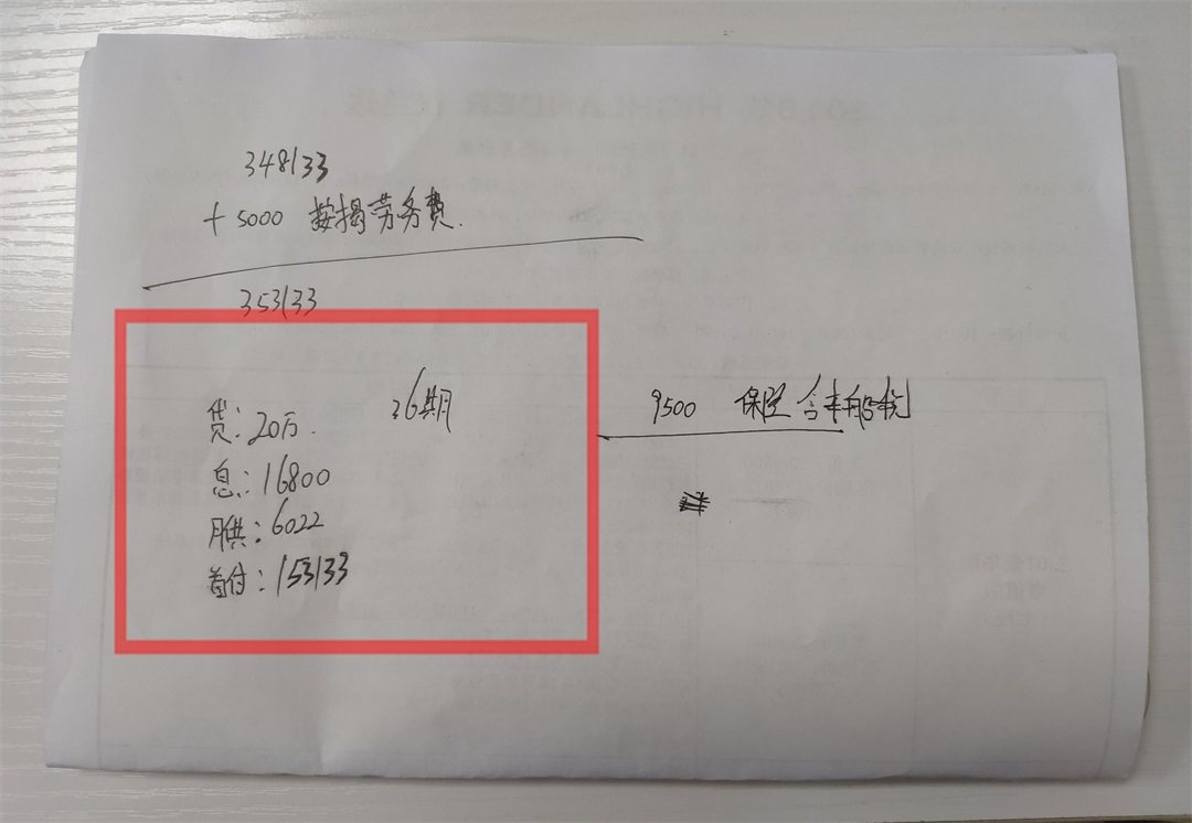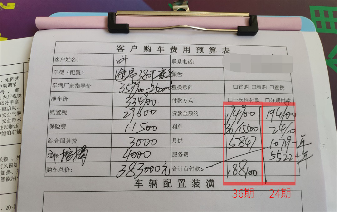 同样选择贷款购车分36期的话,贷款金额为200000元,而首付需要给153133元,月供+利息每月应还6022元,贷款共计利息为16800元。而贷款的按揭劳务费为5000元。