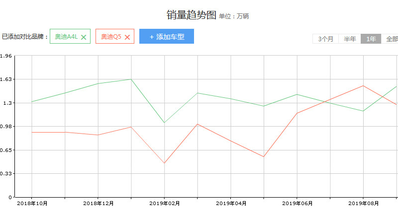 高档车销量包括奔驰,宝马,奥迪里的基础款,这三个品牌的基础款价格大幅下降,是增长的因素之一。当然无论是A4L还是Q5也好,豪华品牌的总销量与同级合资车相比还是有很大差距的,上面的数据也并没有明显指明豪华品牌车型销量即将超越同级别的合资车,只是增长势头在车市低迷的环境下反超而已。