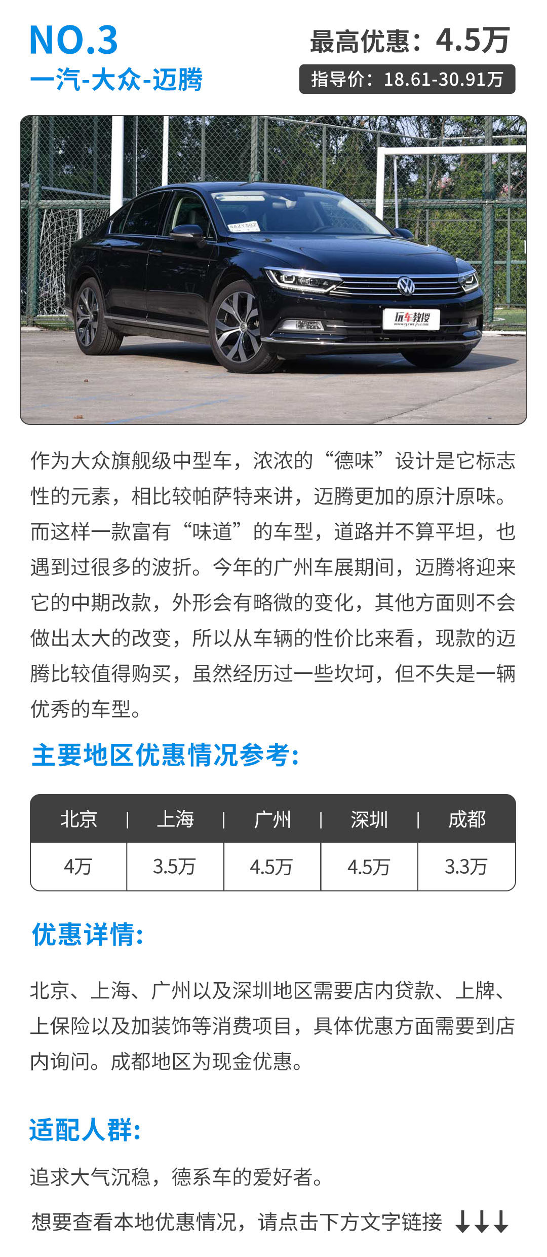 广州车展作为每年最末尾的一次大型车展,在年关将至之时也是车企们最后一次发力的机会。车展上不仅有层出不穷的新车型上市,伴随而来的也有各种大型的促销或者是团购活动,所以广州车展作为每年汽车界最后的“盛会”,也是每年年底最佳的购车时机,错过之后就要等来年的优惠了。这一期,教授结合目前市场上的优惠行情,推荐几款近期大抄底的车型,它们因为即将更新换代,或是新款已经到来,所以将近车展和年底会有不错优惠,一起来看看吧!