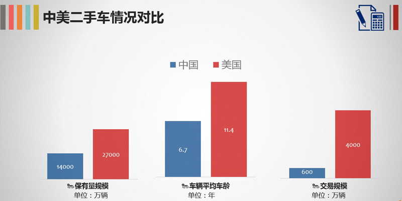 从2013年的数据可以看出,国内新车交易量早已赶超美国,而国内新车的平均使用年龄只有6.7年。根据目前国内成熟的二手车交易体系就可以推测,未来国内二手车的交易量将会迎来井喷式爆发期。