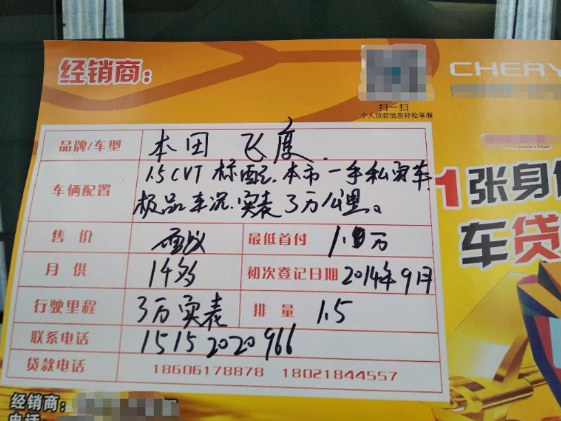 教授扮演有意向入手一辆二手飞度的车主去走访二手车市场。一辆2014款 1.5L LX CVT舒适版的飞度,2014年新车官方售价是8.18万,这家二手车销售店放置的这辆车里程表是3万公里,因为报价表上没有具体的成交价格,当询问工作人员后才得知费用在58000元左右,要入手的话还可以把价格降低一些。