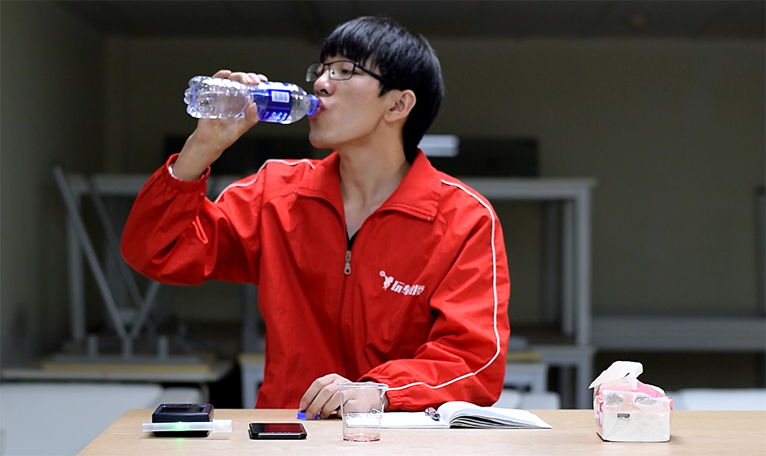 红酒虽然受众够广,但是白酒也是同样不可忽略,因此我们再用相同的办法测试白酒,同样的测试器材以及流程,只是把上一波红酒测试中喝吐的李先生(笑行)换成了酒神黄老师,并且酒换成了52度数的泸州老窖白酒,每人喝下100ml白酒,看看结果又会如何?