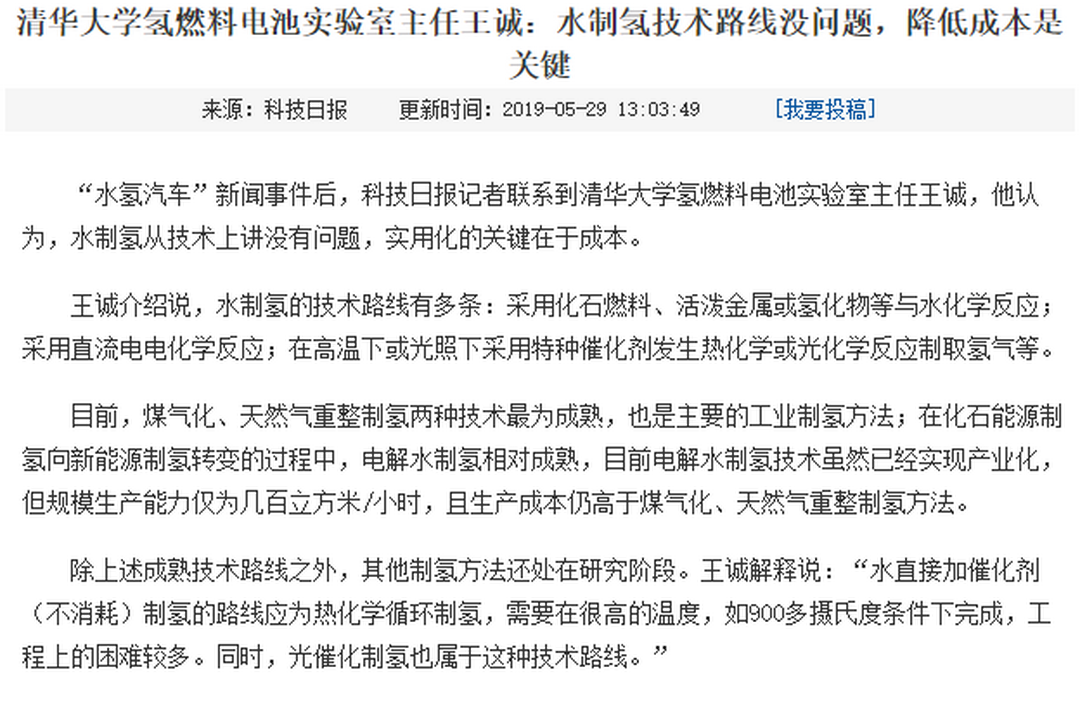 后续经过各路专家科普,青年汽车水氢发动机的制氢技术路线是可行的,不过成本过高。根据清华大学氢燃料电池实验室主任王诚所言,按照青年汽车的制氢方法,制造1.1立方米的氢气需要15元,而1立方米氢气产生的热值大概只能推动汽车(油耗以10L/100km计)行驶3.7公里,折合4元多一公里的用车成本。