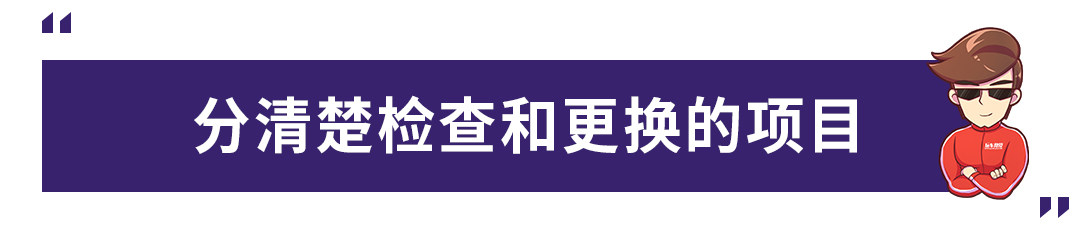 在进店保养时4S店的售后服务顾问都会告知本次保养需要做的项目和费用,而这时他很可能会把需要检查的项目直接默认成需要更换,比如说24个月得检查一次的冷却液就直接告诉你24个月得换一次,要避免这种坑,最简单的办法就是每次保养之前看清楚这一次保养需要做哪些项目了。