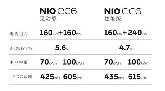 关于动力输出,蔚来EC6的两个版本数据都非常抢眼。EC6的常规版本最大功率和峰值扭矩甚至接近了Model Y的高性能全驱版的数据。EC6与ES6共用的同一个平台,它们绝大多数的零部件都是可以共用的。这也是为什么EC6的运动版和性能版的动力参数都与ES6很接近。很容易看出,EC6就是冲着特斯拉Model Y去的,但我注意到,EC6的实际上市及售价要在2020年第三季度发布,而国产Model 3已经下线交车了,Model Y也很大概率会在2020上半年公布国产售价,预计EC6没第一时间公布售价的原因还是要给自己留一手。