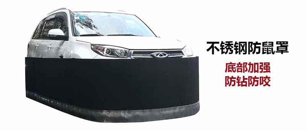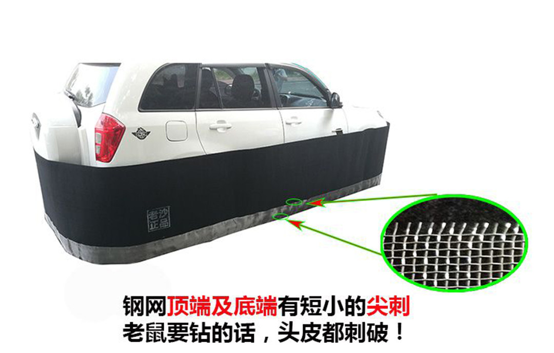 最后,对于某些鼠患比较严重的地方,市面上还有一种“终极防鼠利器”:防鼠罩。虽然汽车引擎舱和底盘无法做到完全密封,老鼠总能找到进入车内的空隙;但是我们可以将汽车从外部围蔽起来呀!市面上销售的这种防鼠罩就是运用这一方式,通过高度可达数十厘米的软胶板对车身进行围蔽,胶板下沿增加铁丝网防止老鼠破坏橡胶,达到阻挡效果。