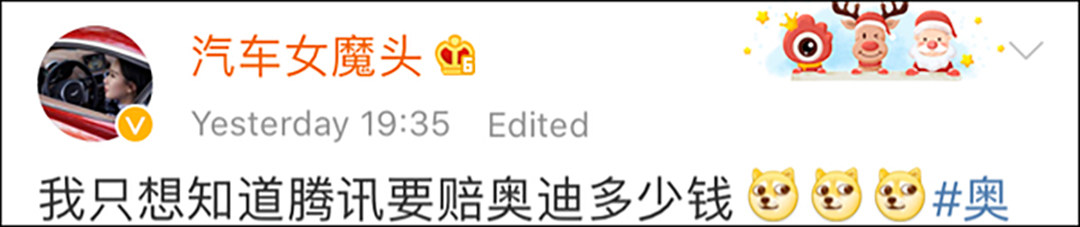 此外,随着事件的发酵和腾讯官方道歉信的曝光,双迪迅速窜上微博热搜,贡献了#腾讯广告致歉#、#奥迪广告被玩坏了#、#腾讯回应朋友圈广告翻车#、#奥迪给英菲尼迪打广告#等热搜话题。