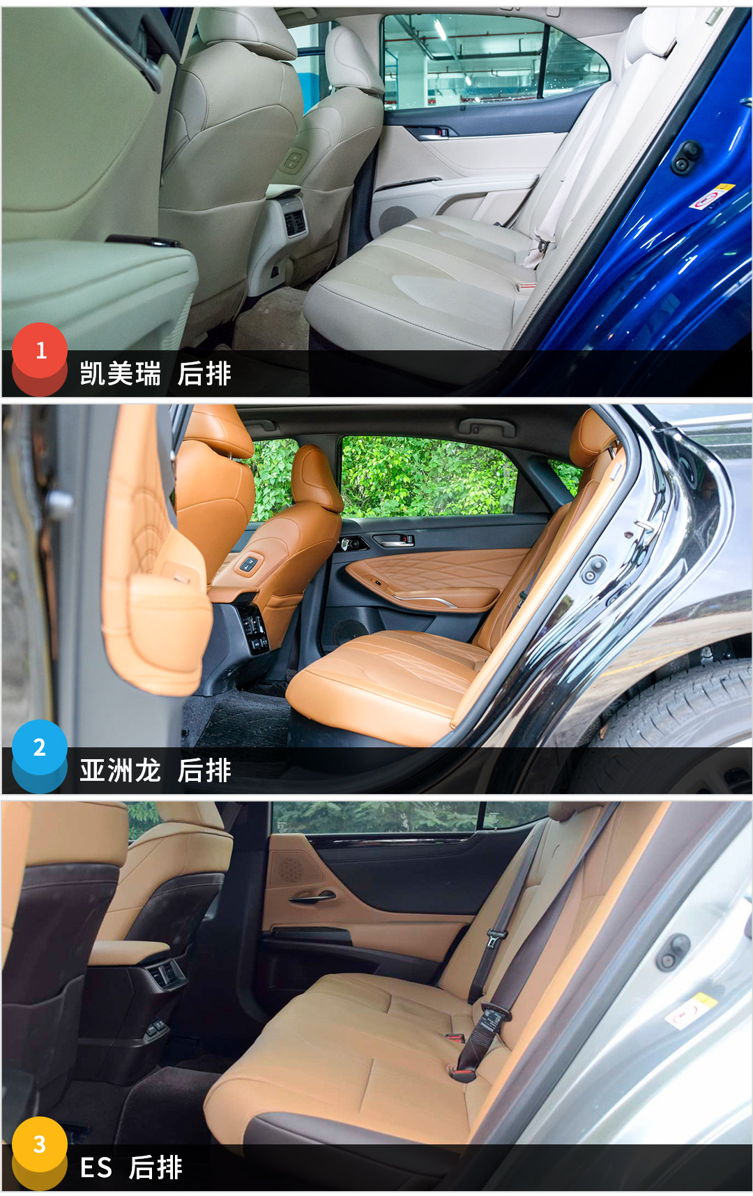 从数据上来看三车的尺寸都是非常接近的,虽然同为TNGA架构底下的产物,但是相比之下凯美瑞的尺寸则不怎么占优势了,反观之下亚洲龙的尺寸则和ES几乎一致,再结合亚洲龙的售价来看性价比就非常突出了,毕竟都到了B级车的空间了谁又会不喜欢大的呢?