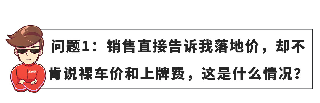 这种销售上来就直接给你开出落地价的情况,一来是车辆可能有加价提车的情况,二来也有可能是整个裸车价中包含了一些不必要的险种,例如划痕险之类的。销售直接开门见山地提出落地价,显然是想把消费者注意力引导到这一方面上,分散我们对其他收费项目的注意。当然还有一种可能,就是害怕消费者用裸车价来与自己压价,或是与其他地区和4S店进行比较。