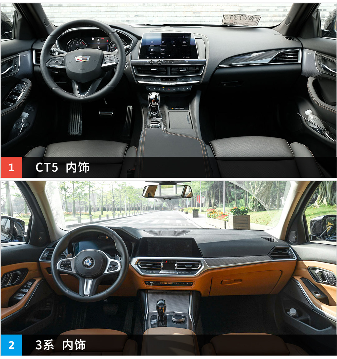 至于在内饰上两台车的表现则是不相上下了,相比起全黑内饰的CT5,3系的双色内饰要显得居家不少。至于配置方面,CT5配备的是10英寸的悬浮式触摸屏,而3系的则是10.25英寸触摸屏,两者差距并不明显,不过3系全系标配了12.3英寸的全液晶仪表盘,而CT5则要到顶配车型才配备,不过两者都配备了极具科技感的电子换挡杆。而在3系上,对于M运动版的车型提供了“丁字裤”M运动方向盘,如果不是的话只提供普通的三辐式方向盘。