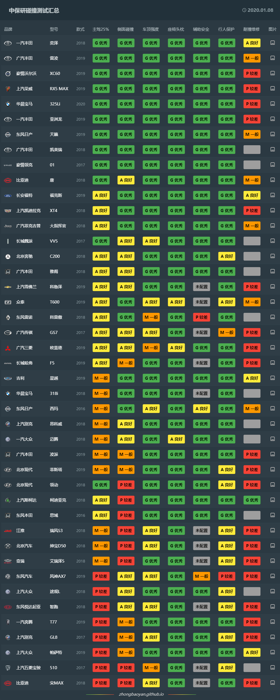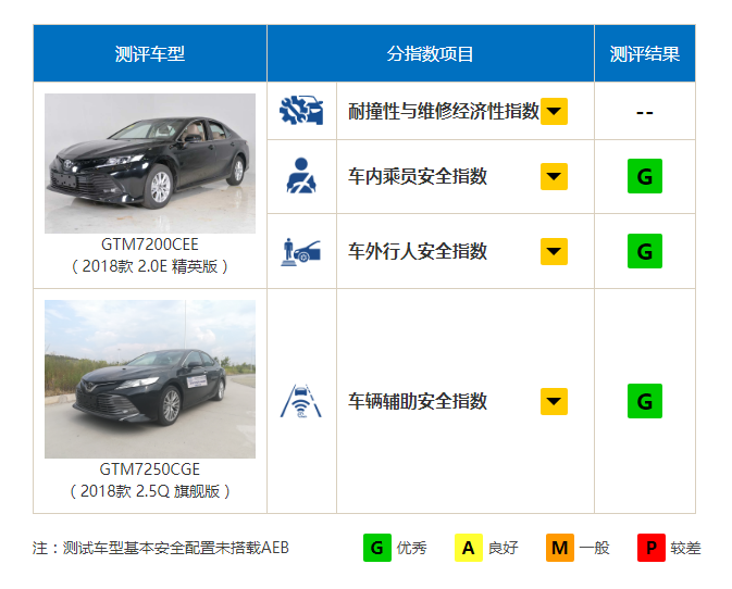 从中保研的碰撞成绩来看,大部分日系表现都很不错,尤其是丰田凯美瑞,基本上都拿到了全G。