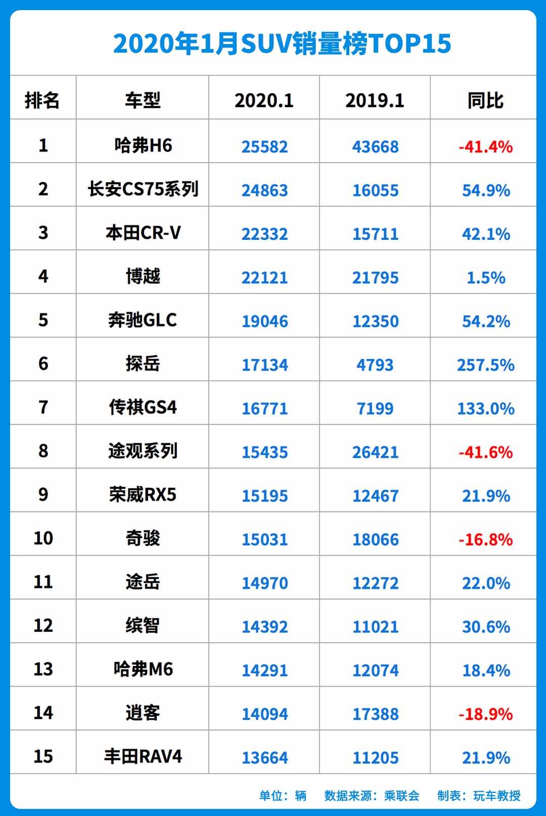 根据乘联合的数据显示,今年1月份国内狭义乘用车市场销量为172.1万辆,同比下降20.4%,这是自2005年乘联会零售统计以来的最低增长,其中SUV销量为80.4万辆,同比下降14.5%。