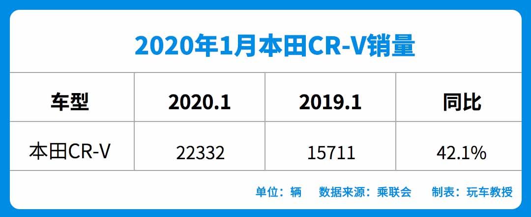 继去年12月之后,本田CR-V在今年1月份的销量再次突破2万辆,达到2.23万辆,较去年同期增长42.1%,成为当月唯一一款销量过2万的合资SUV。
