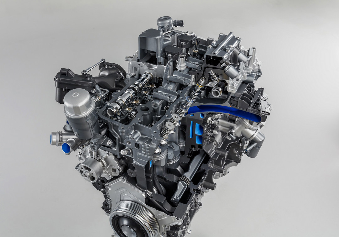 此外,过去的EcoBoost发动机是缸内侧置直喷技术,而Ingenium发动机使用的是高压中置直喷,可以减少发动机湿壁现象,并且可以进一步增大喷油嘴的喷油压力,增加汽油的雾化效果,更好地与空气混合。同时,Ingenium发动机还有双可变气门正时,并且在传统的基础上增加了电磁可变升程控制,使得调节更加精准,进一步压榨发动机的效率,同时还能降低发动机排放。