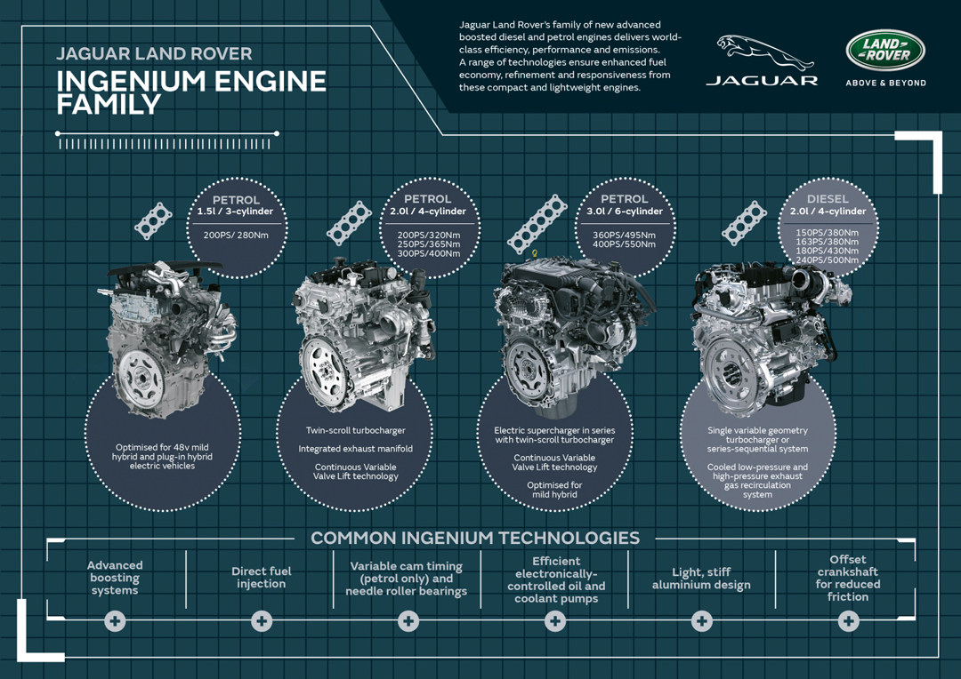 目前,捷豹XEL、XFL,路虎揽胜星脉、发现神行、揽胜极光等车型都搭载了这一款全新的发动机。Ingenium发动机主要有:1、集成式排气歧管,预热快、油耗低;2、使用滚子摇臂气门电驱动液压技术,实现更高功率输出和更精准控制;3、单涡轮双涡管技术以及陶瓷滚珠轴承,进一步降低涡轮迟滞;4、模块化结构,更适合时代的发展;5、横、纵置均可使用这一套动力总成,并且拥有一定的电气化改进能力。
