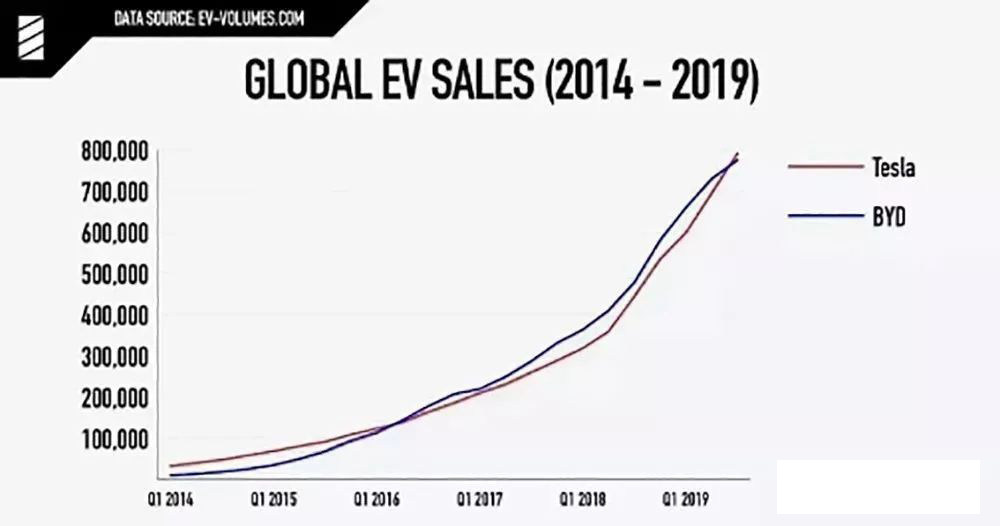 对比二者的电动车销量,也不难发现,2016年之前,特斯拉的销量保持领先;2016年之后,BYD销量超过特斯拉,并将这一优势持续多年;2019年十月,BYD又被特斯拉反超。说两者是相爱相杀的关系,似乎也不算错。