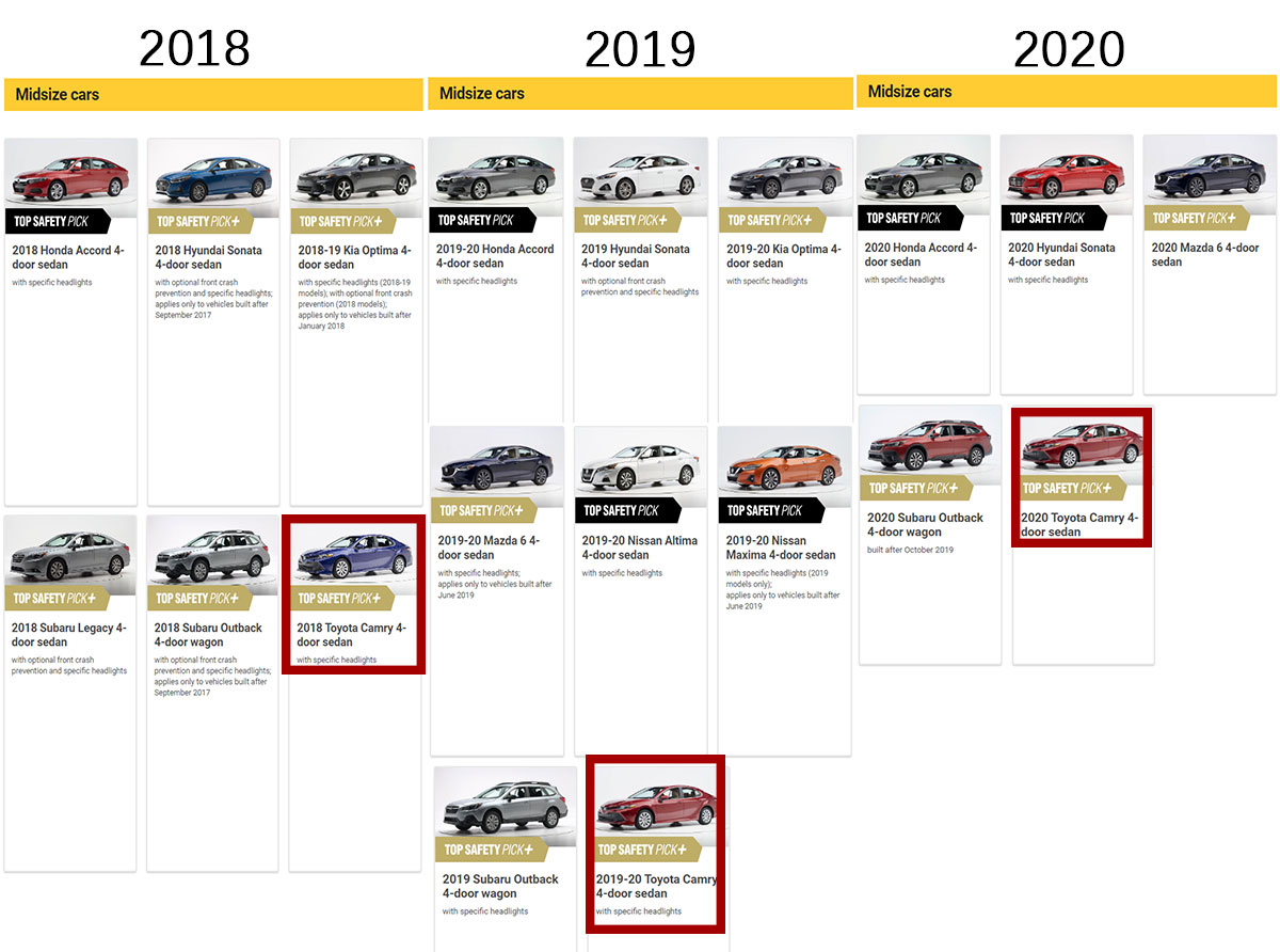 最后值得注意的是,2020年获得TOP SAFETY PICK+的车型中,毫无意外地有凯美瑞的一席之地。这样一来,凯美瑞已经连续第三年在IIHS的碰撞安全测试中斩获最高的TOP SAFETY PICK+奖项,而且是中高级轿车中唯一一辆获得此成就的。去年,国产车型也在中保研碰撞测试获得”全G”的优异成绩,凯美瑞交出的这份安全答卷值得点赞。
