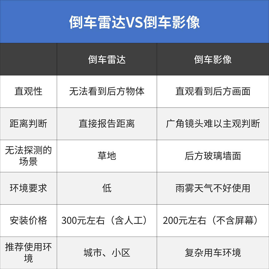 最后,笔者就倒车影像和倒车雷达的特性整理了一张表。