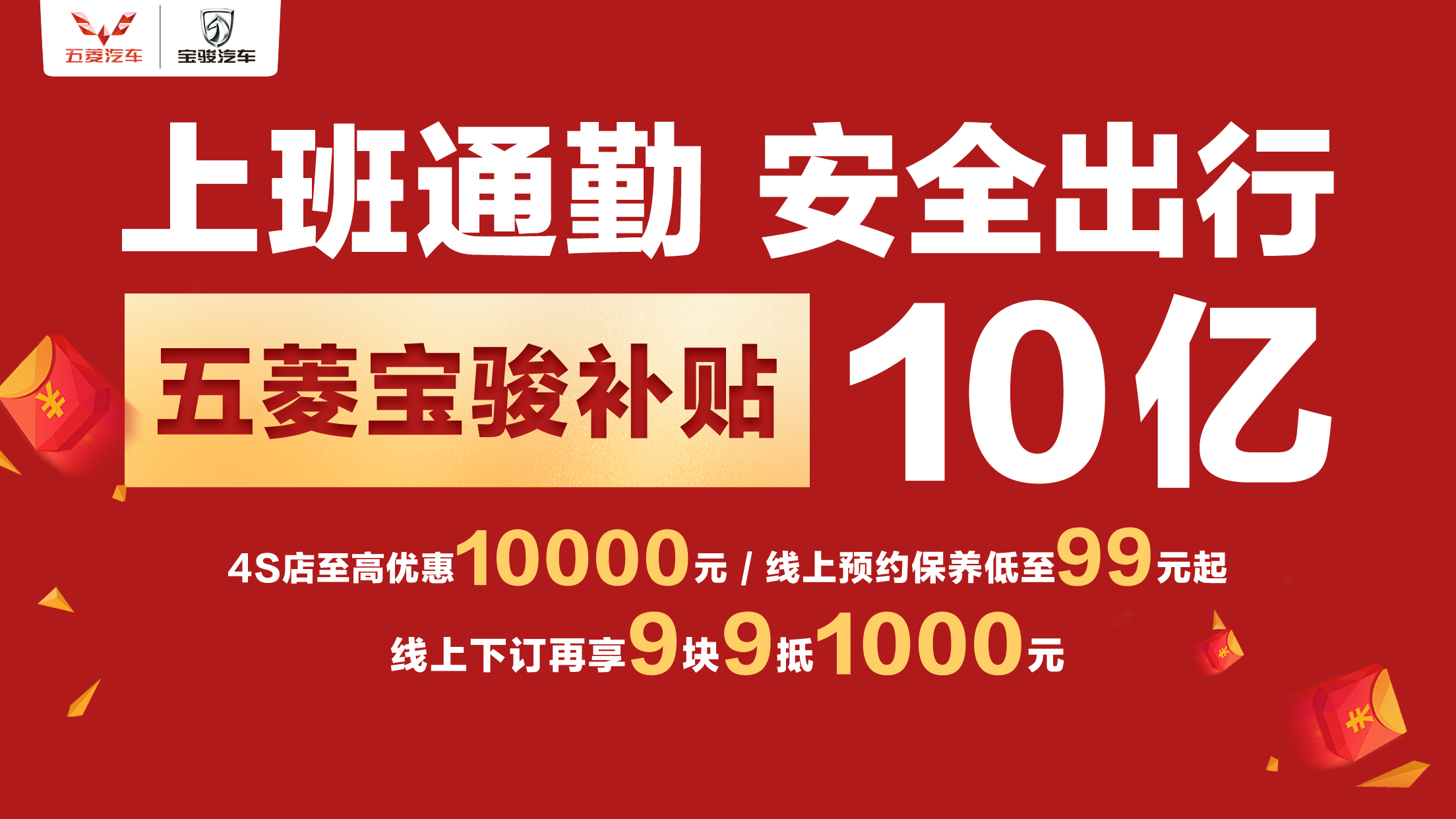 上汽通用五菱今天正式推出“上班通勤安全出行,五菱宝骏补贴10亿”大型活动,通过给全国人民补贴“10亿” 的利好政策,对所有购买五菱宝骏的个人进行购车补贴,综合优惠高达11000元,成为疫情期间第一家面向中国消费者提供巨额出行补贴的车企。