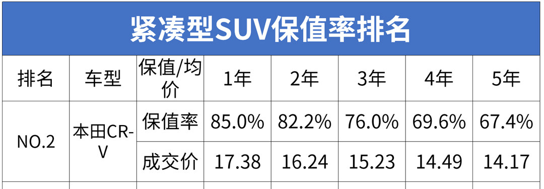但在油耗、耐久性上合资中的本田CR-V小胜一筹,CR-V的口碑综合油耗为8.2L/100km,令人满意。而CR-V 5年车龄保值率仍超过67%,国产紧凑型SUV仅为40%左右。保值率高则说明耐久性高,也意味着换车的容易程度。