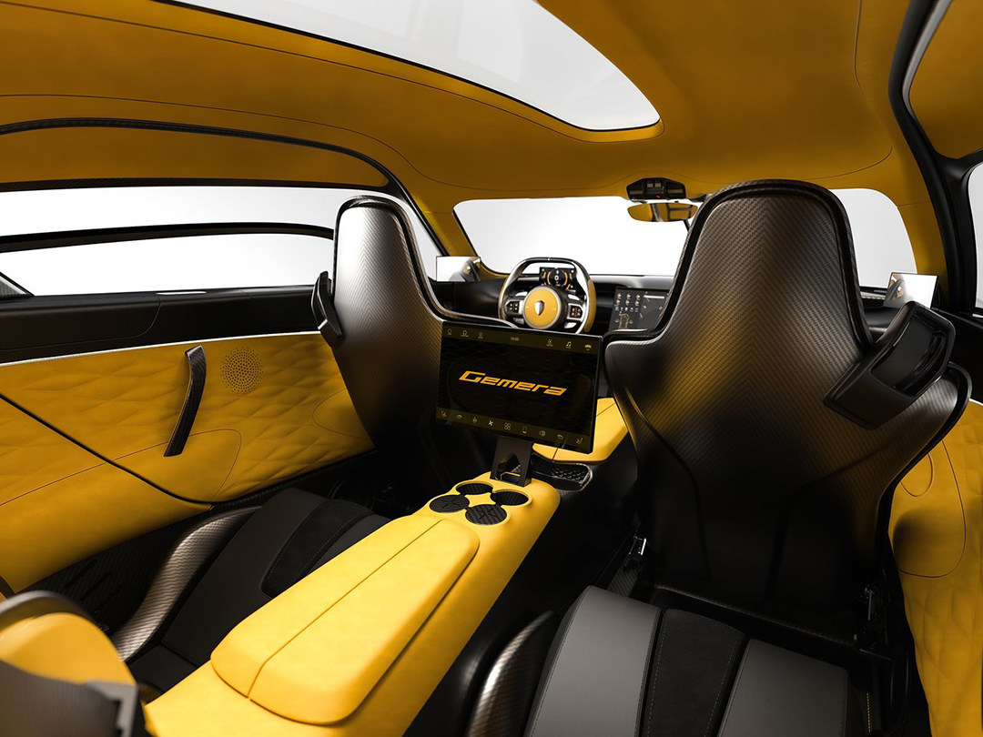 从这些配置中我们已经能够窥探到Gemera对于“实用性”的考量,它是一台驾驶机器,但也是一台可以满足4人乘坐的极速驾驶机器;仅后排就提供了双杯托和娱乐屏的规格来看,Gemera已经重新定义了超级GT跑车该有的样子。