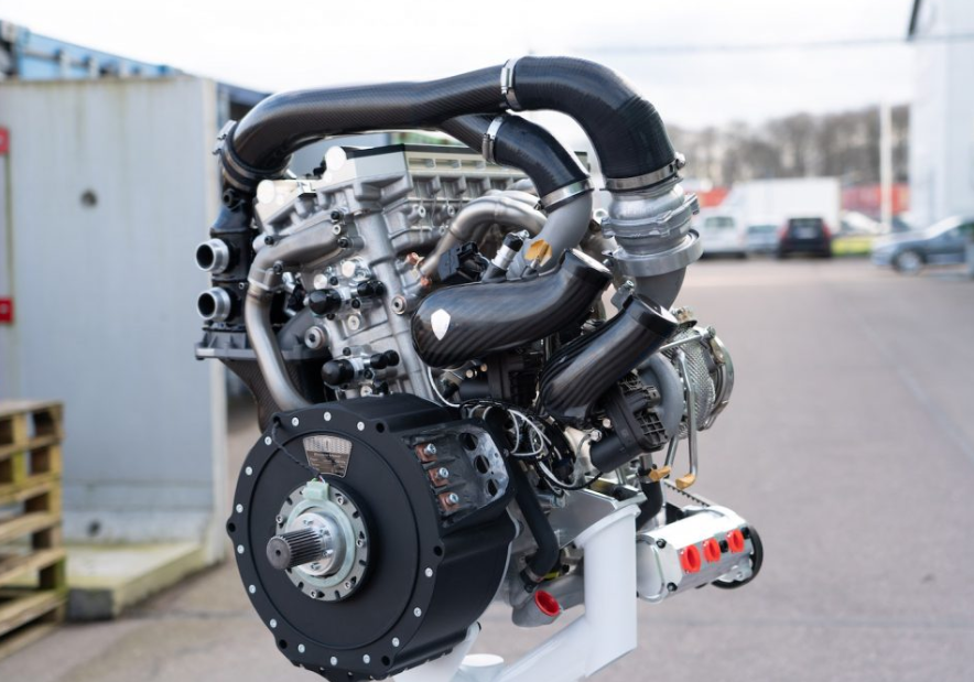 它的动力布置很有趣,后桥左右车轮各配备一台电机独立驱动,3缸发动机布置在接近后桥的位置(中置),但它是用来驱动前轮,发动机曲轴上还串联了一个电机(可理解为ISG)。这种动力布置宣传起来比较有吸引力,因为3个电机加上发动机马力超过1700ps,电池电量足它就是这就这条路上的直线王,没电的话,官方就不与置评!