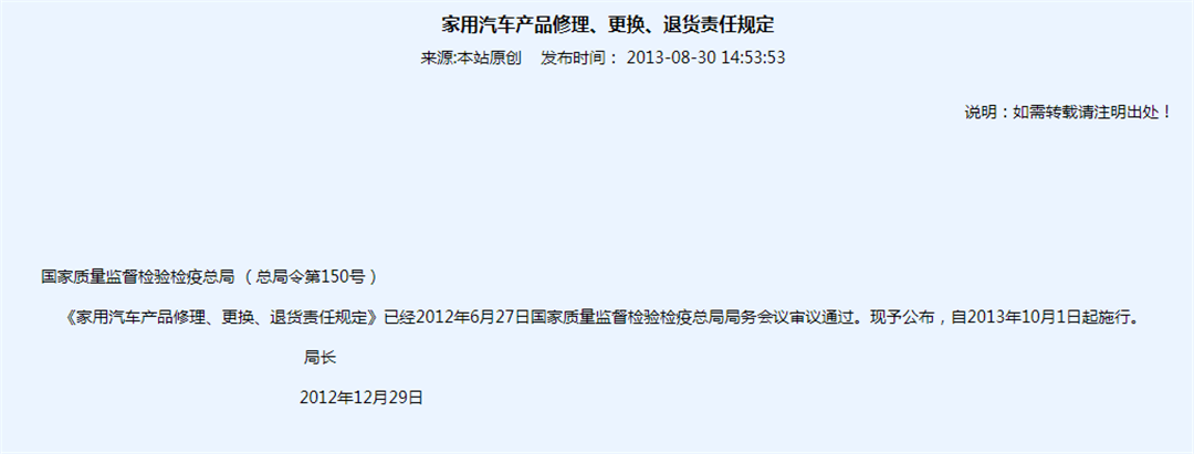 其实针对上述的疑问,国家已经为广大消费者给出了最为规范的答案,那就是汽车三包政策。