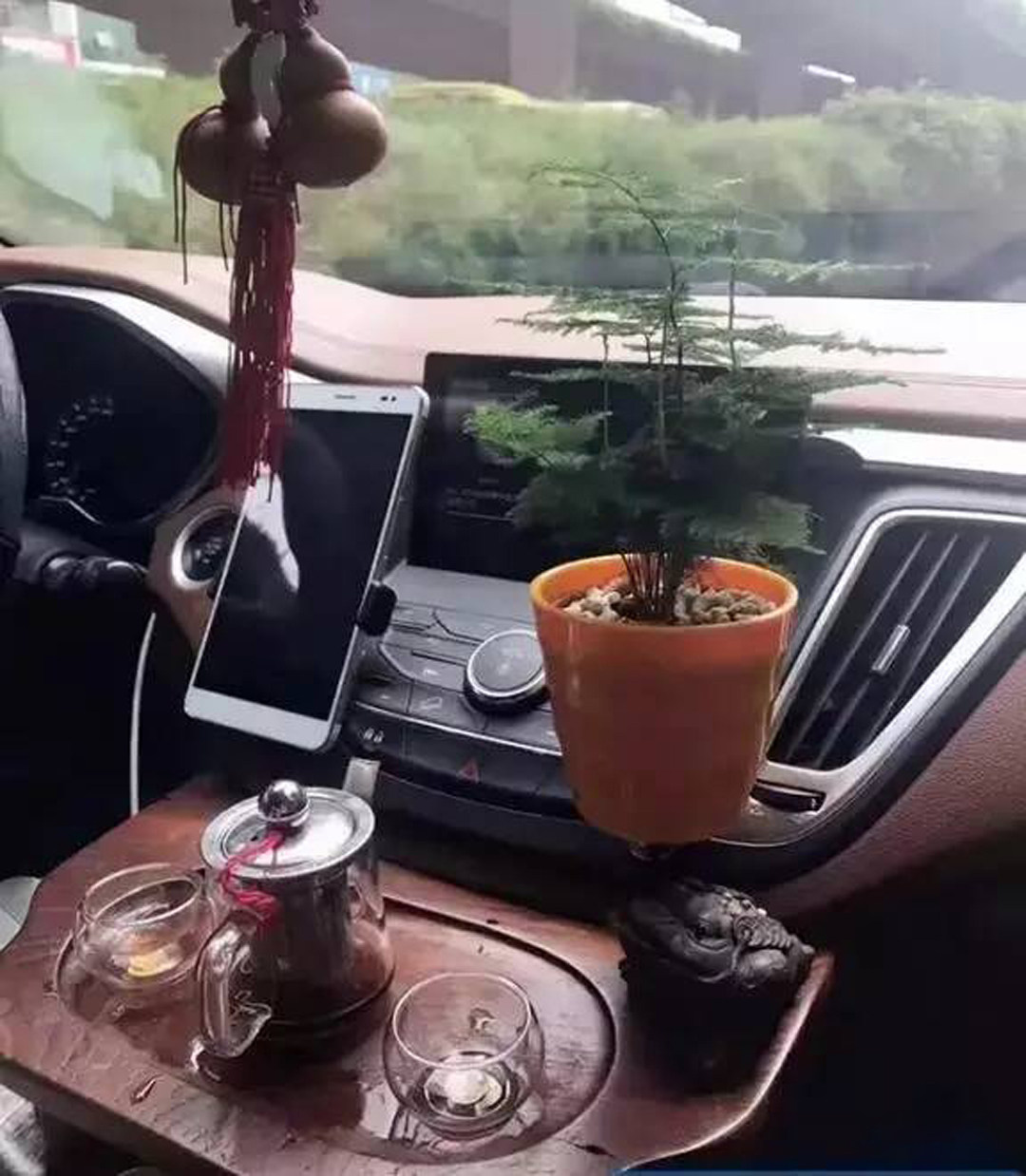 前段时间教授更是在网上看到很多人在车里装了个茶盘、热水壶,在车里“甲爹”(潮汕话:喝茶)?甚至在车里装个鱼缸!对此,教授有几句话想说。
