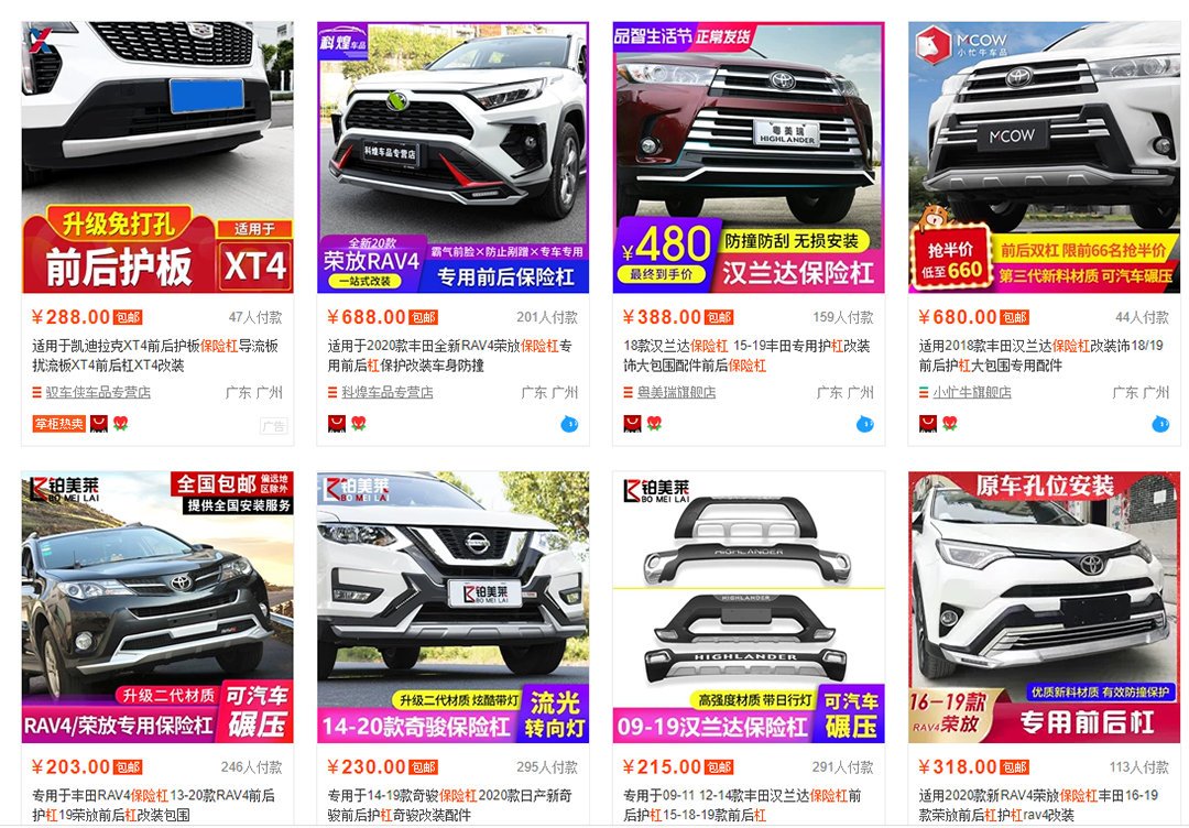 其中以保险杠为重灾区,某宝上众多卖家以保护车漆、防剐蹭等为卖点,推出众多“保护组件”,根据教授了解,这些大多以胶粘的形式安装,先不说安装方法是否正确,单凭胶水或者胶条来安装,跟原厂的螺丝+支架+胶钉相比,高下立见。短期内还不能开除差距,但是长时间使用后,胶水老化,装饰件将会脱落,并且会对原车企造成不可逆的损害。