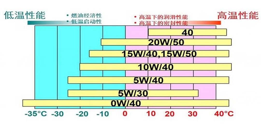 美国汽车工程师协会(SAE)将机油在100℃的运动粘度从5.6cst-26cst(厘斯:运动粘度单位)区间进行了分级,100℃时的运动粘度值越高,则表示100℃时的粘度就越大,在高温下对发动机的保护性能越好。所以这就是为什么很多涡轮增压发动机推荐使用40的机油,因为涡轮增压发动机在高速运转时温度可达400℃,有点甚至达到600℃,如果机油的运动粘度低,在高温下就好像流水,对发动机内零部件不能起到润滑和保护作用。