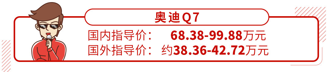 另外,奥迪Q7有一点非常值得点赞,ESP、主动刹车/安全等安全配置和美版车型无差别,车道偏离预警、车道保持辅助、并线辅助等配置一样需要进行选装。顶配车型增加了可变悬挂和前排座椅按摩功能;10万公里的质保里程也比美版车型8万公里有优势。