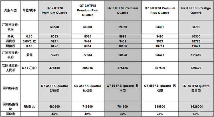 因为关税和国际运输等成本的原因,国内进口车价格的确比以美国为代表的海外市场更贵些,但有减也有加的配置说明口口相传“美版车配置低选配多”、“国内版价格高是因为多了选装配置”的说法并不完全成立。