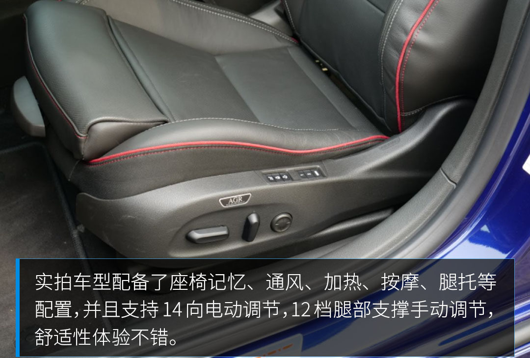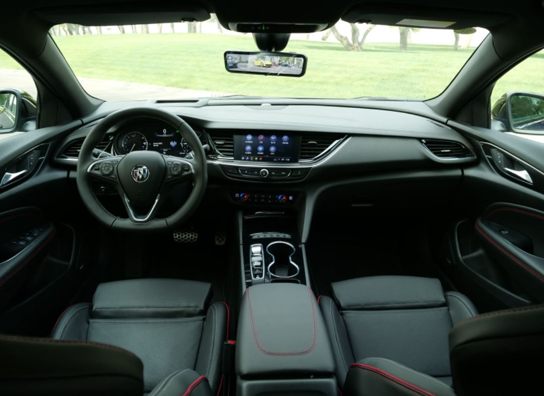 全新君威GS沿用了现款车型以驾驶员为中心的展翼式立体环绕座舱设计,全黑的内饰辅以红色的缝线点缀,典型的运动车型内饰风格;另外因为大量软性材质和皮革的运用,整体质感不错。