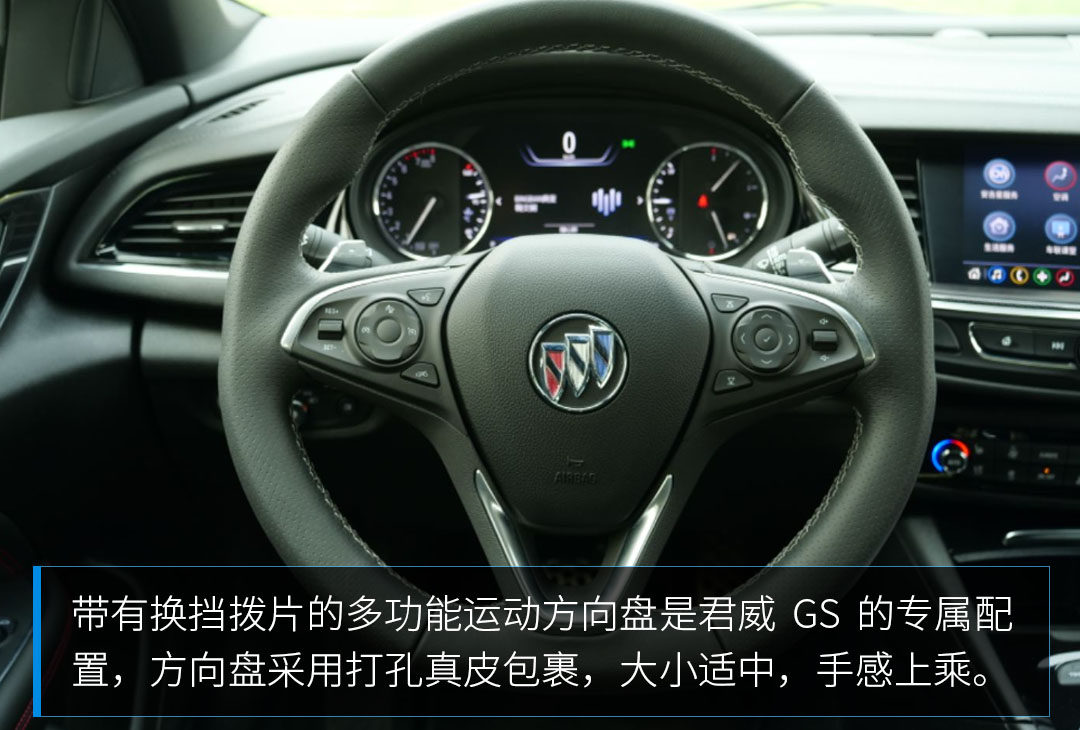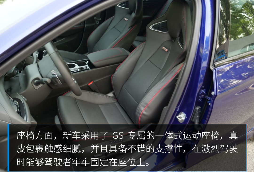 4、采用按键式电子档把,GS专属多功能运动型方向盘带换挡拨片,一体式运动座椅